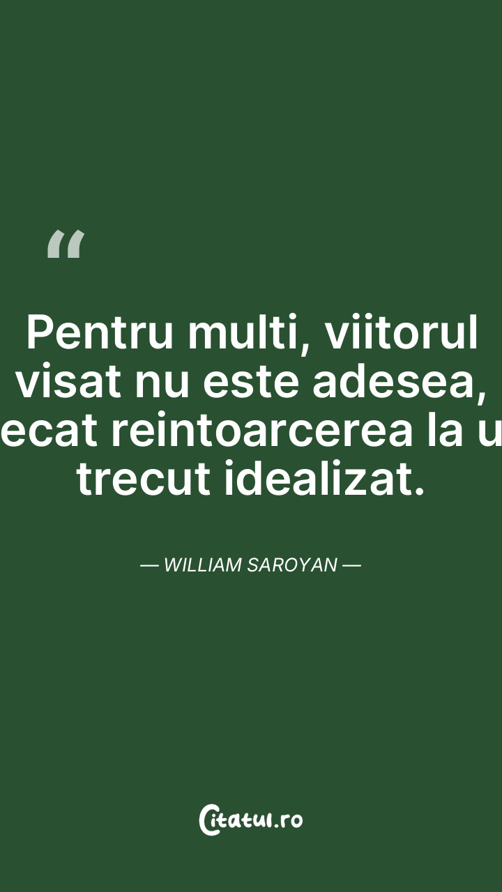 Pentru multi, viitorul visat nu este adesea, decat reintoarcerea la un trecut idealizat. William Saroyan