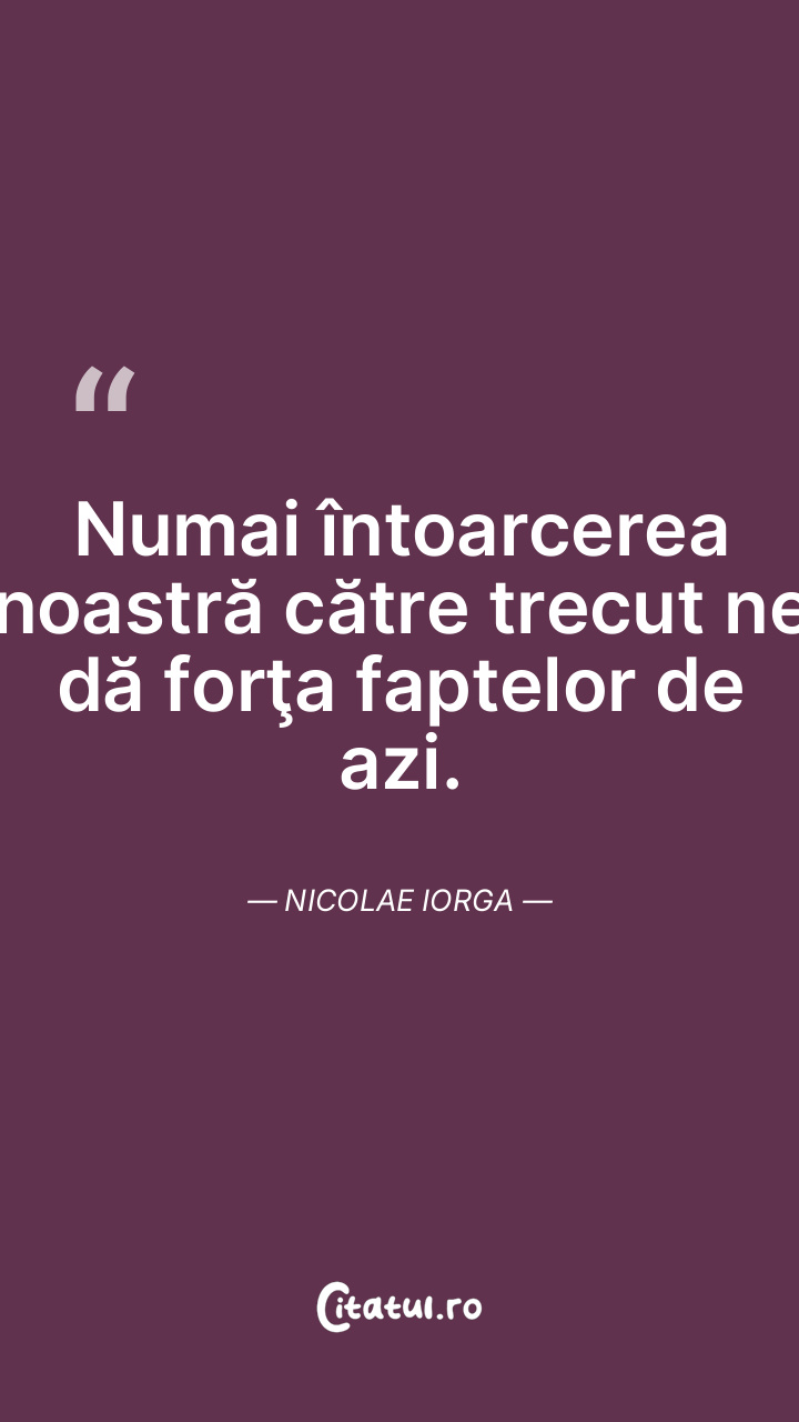 Numai întoarcerea noastră către trecut ne dă forţa faptelor de azi. Nicolae Iorga