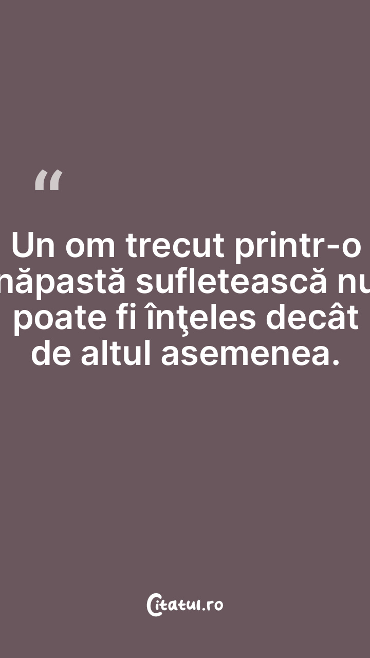 Un om trecut printr-o năpastă sufletească nu poate fi înţeles decât de altul asemenea.