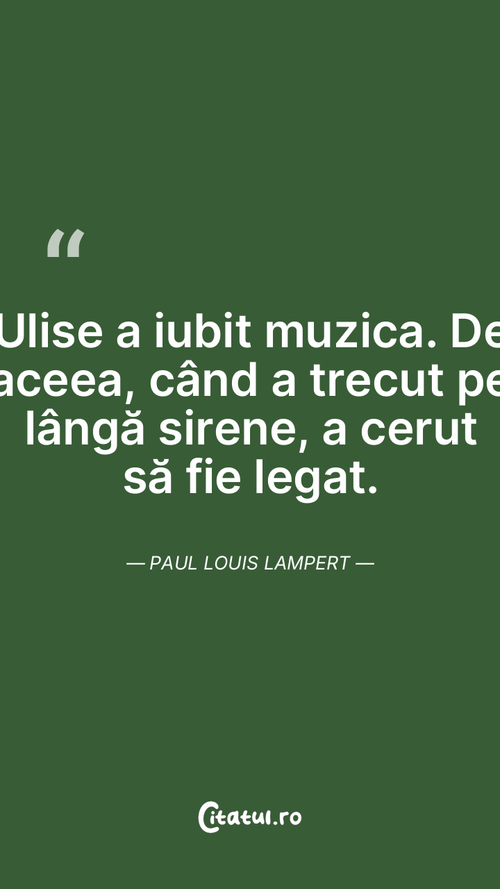 Ulise a iubit muzica. De aceea, când a trecut pe lângă sirene, a cerut să fie legat. Paul Louis Lampert