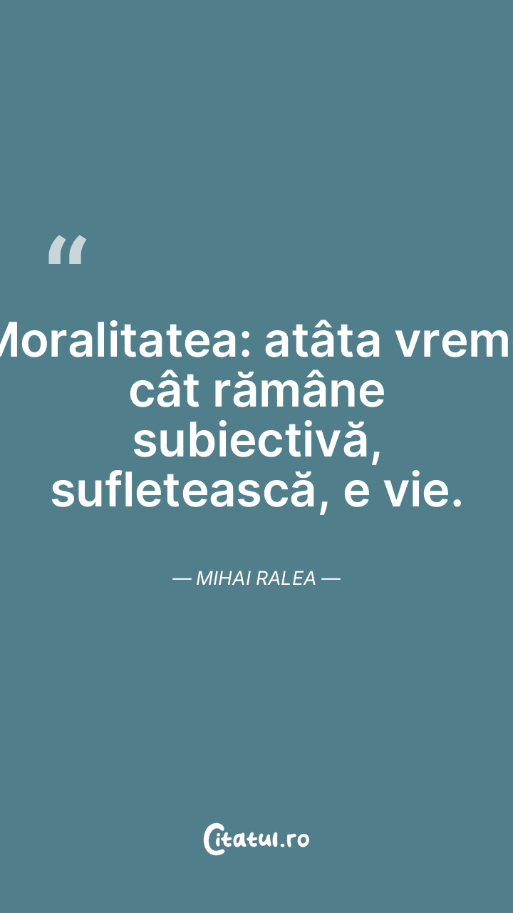 Moralitatea: atâta vreme cât rămâne subiectivă, sufletească, e vie. Mihai Ralea