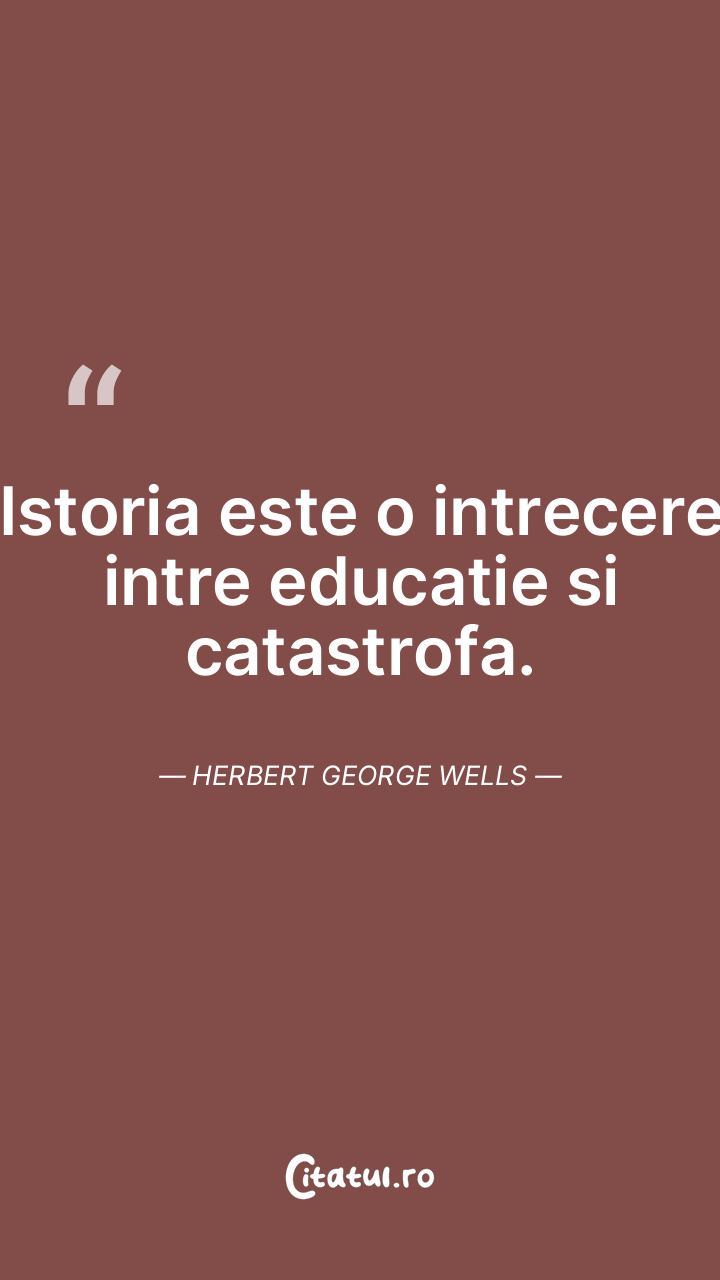 Istoria este o intrecere intre educatie si catastrofa. Herbert George Wells