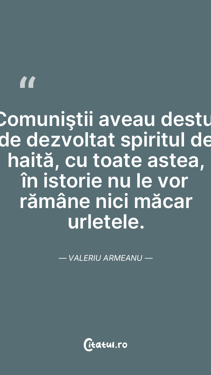 Comuniştii aveau destul de dezvoltat spiritul de haită, cu toate astea, în istorie nu le vor rămâne nici măcar urletele. Valeriu Armeanu