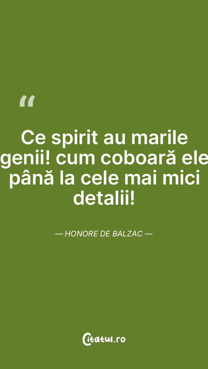 Ce spirit au marile genii! cum coboară ele până la cele mai mici detalii! Honore de Balzac