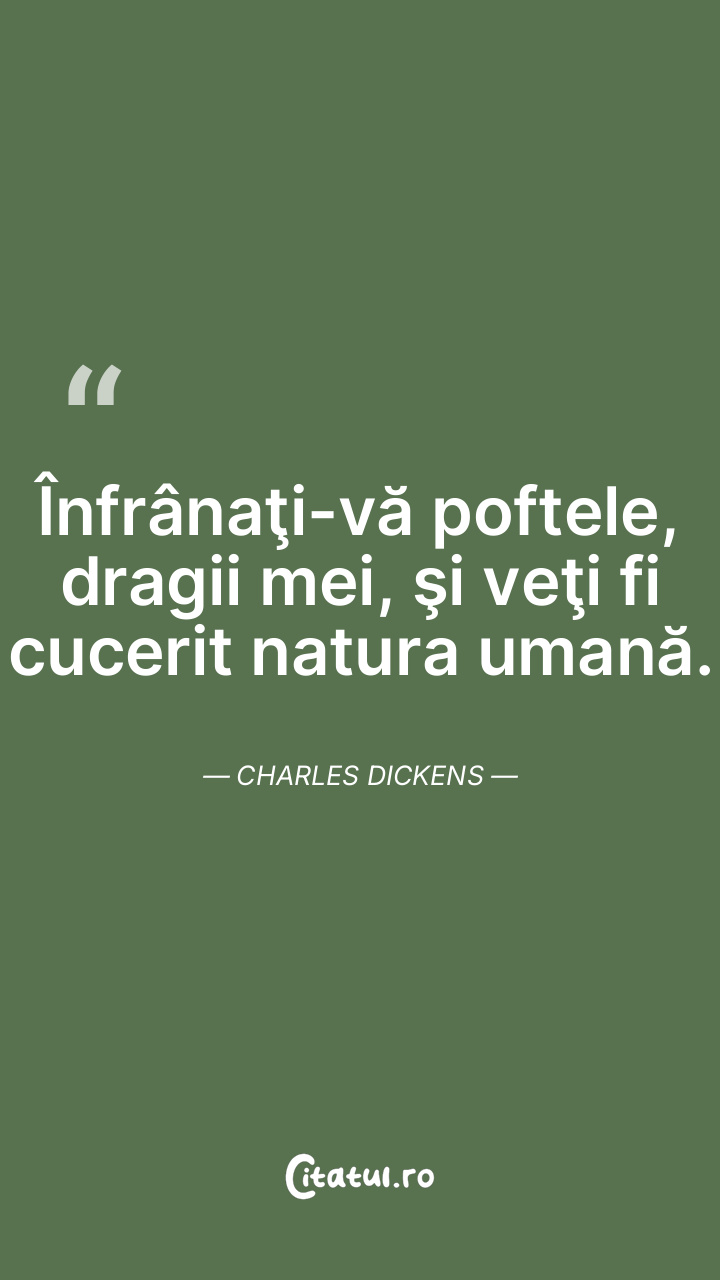Înfrânaţi-vă poftele, dragii mei, şi veţi fi cucerit natura umană. Charles Dickens