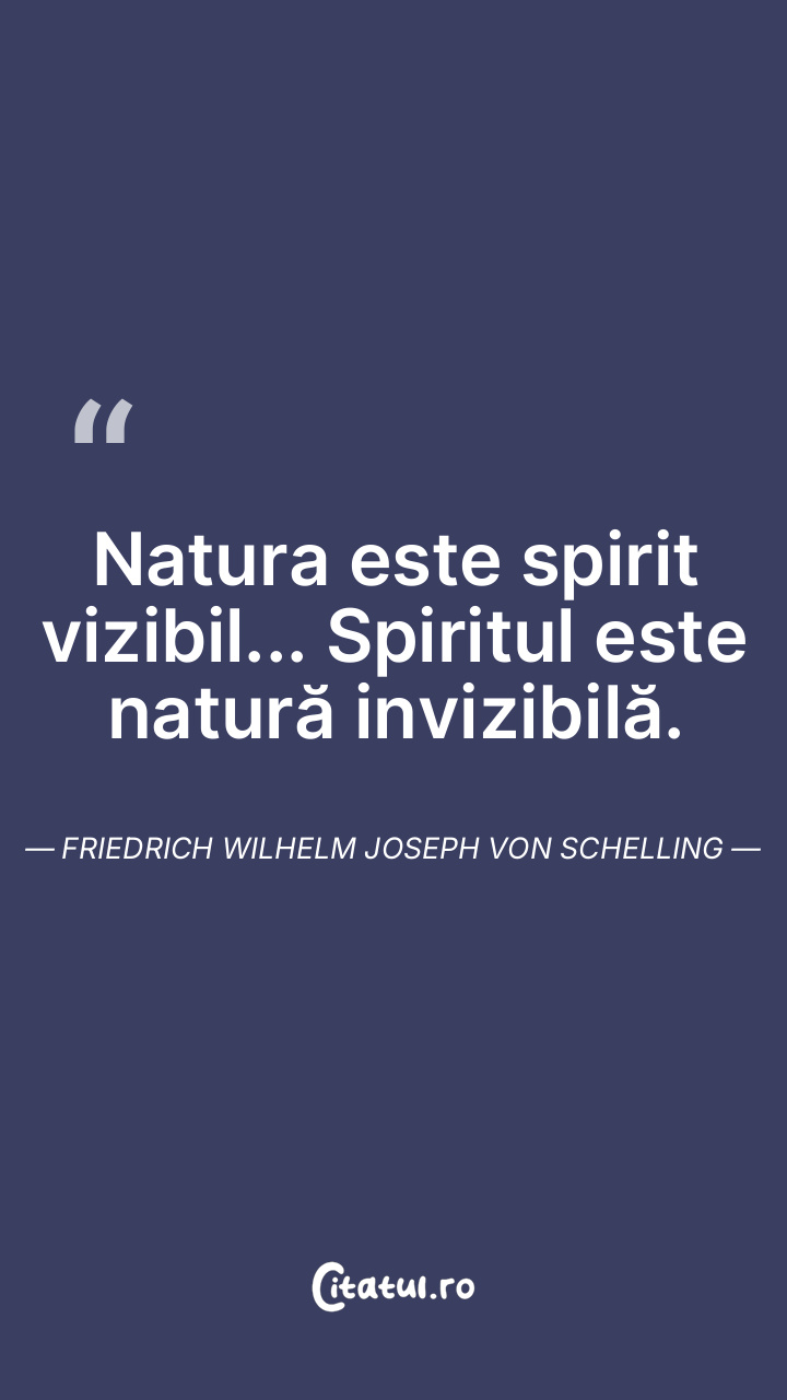 Natura este spirit vizibil... Spiritul este natură invizibilă. Friedrich Wilhelm Joseph von Schelling