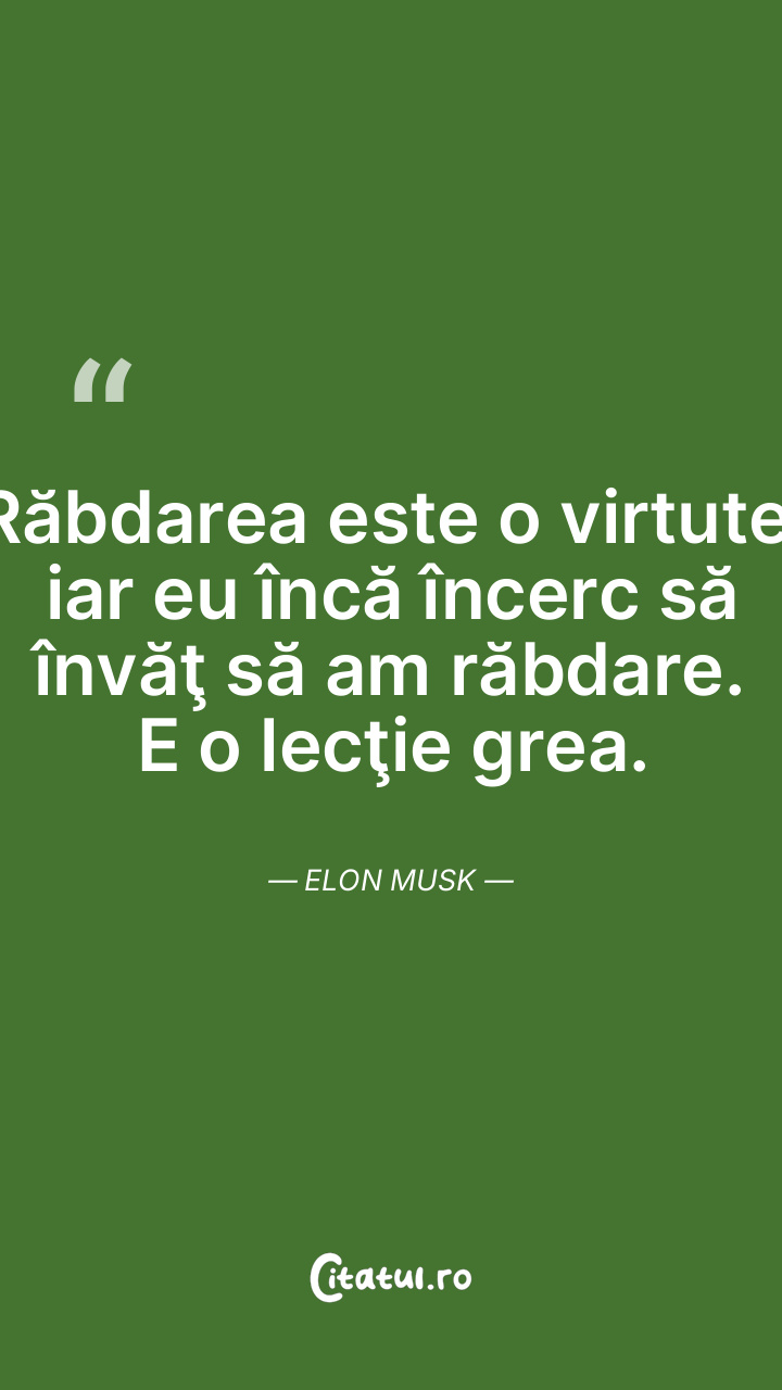 Răbdarea este o virtute, iar eu încă încerc să învăţ să am răbdare. E o lecţie grea. Elon Musk