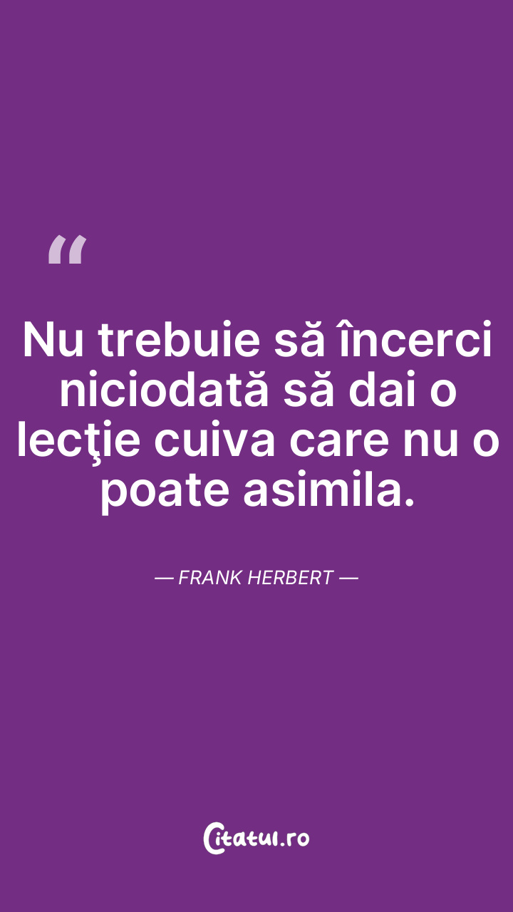 Nu trebuie să încerci niciodată să dai o lecţie cuiva care nu o poate asimila. Frank Herbert