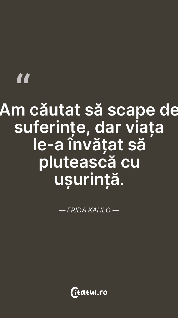 Am căutat să scape de suferințe, dar viața le-a învățat să plutească cu ușurință. Frida Kahlo