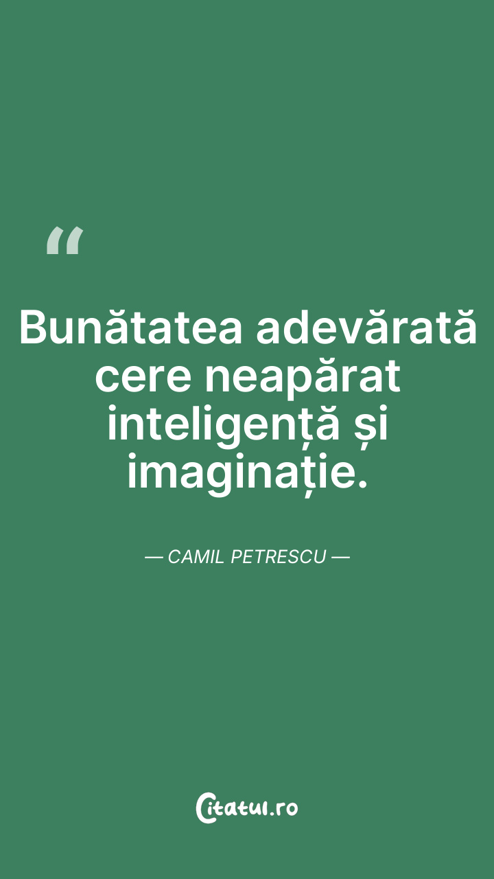 Bunătatea adevărată cere neapărat inteligență și imaginație. Camil Petrescu