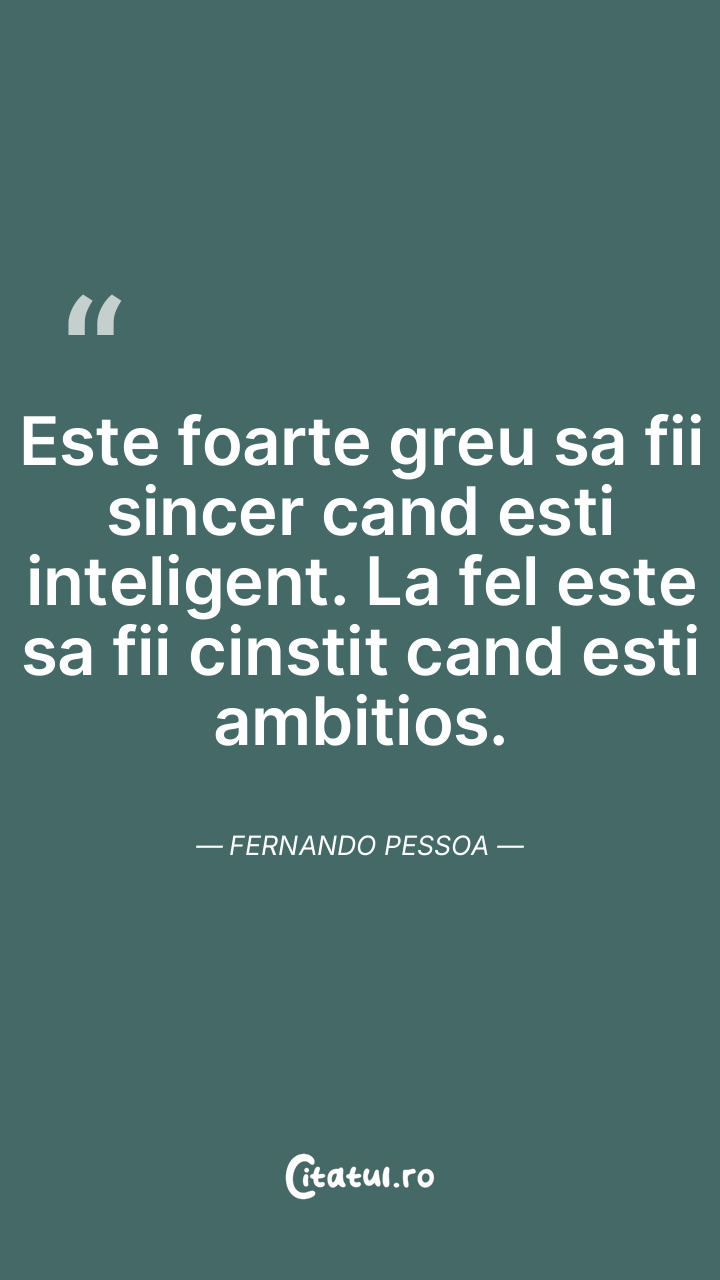 Este foarte greu sa fii sincer cand esti inteligent. La fel este sa fii cinstit cand esti ambitios. Fernando Pessoa