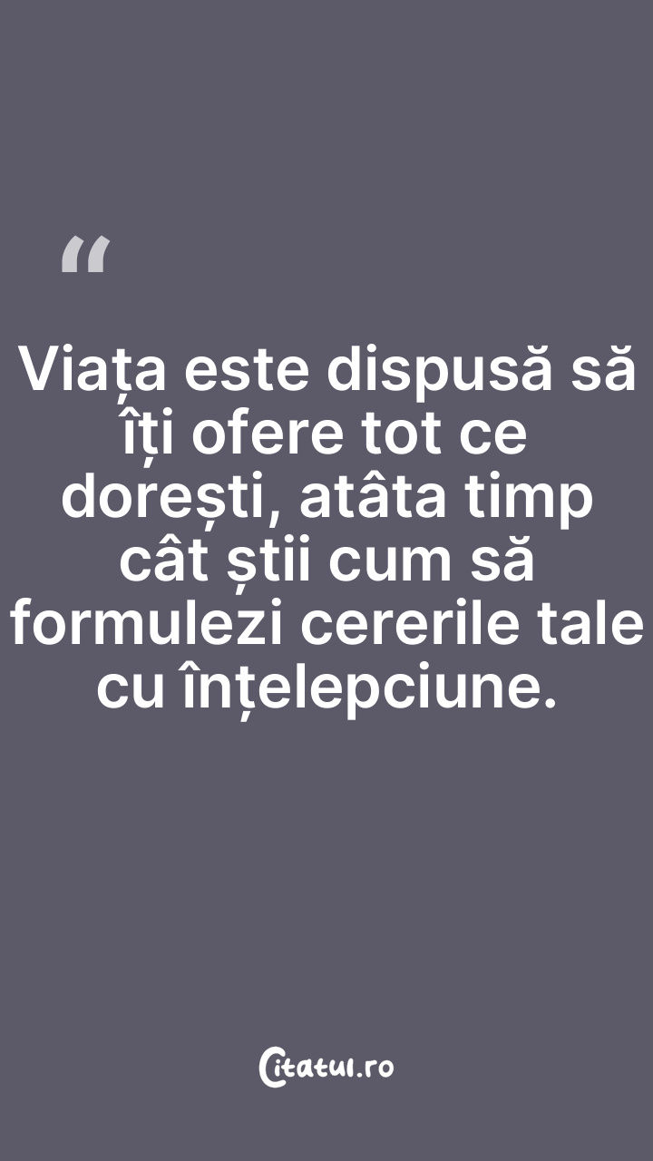 Viața este dispusă să îți ofere tot ce dorești, atâta timp cât știi cum să formulezi cererile tale cu înțelepciune.