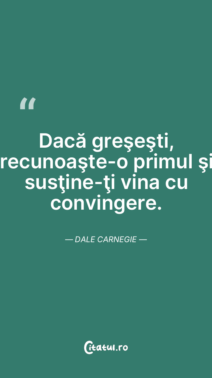Dacă greşeşti, recunoaşte-o primul şi susţine-ţi vina cu convingere. Dale Carnegie