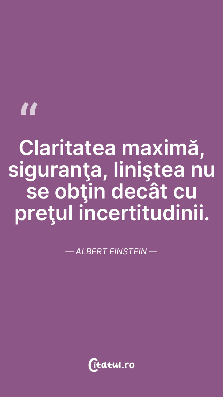 Claritatea maximă, siguranţa, liniştea nu se obţin decât cu preţul incertitudinii. Albert Einstein
