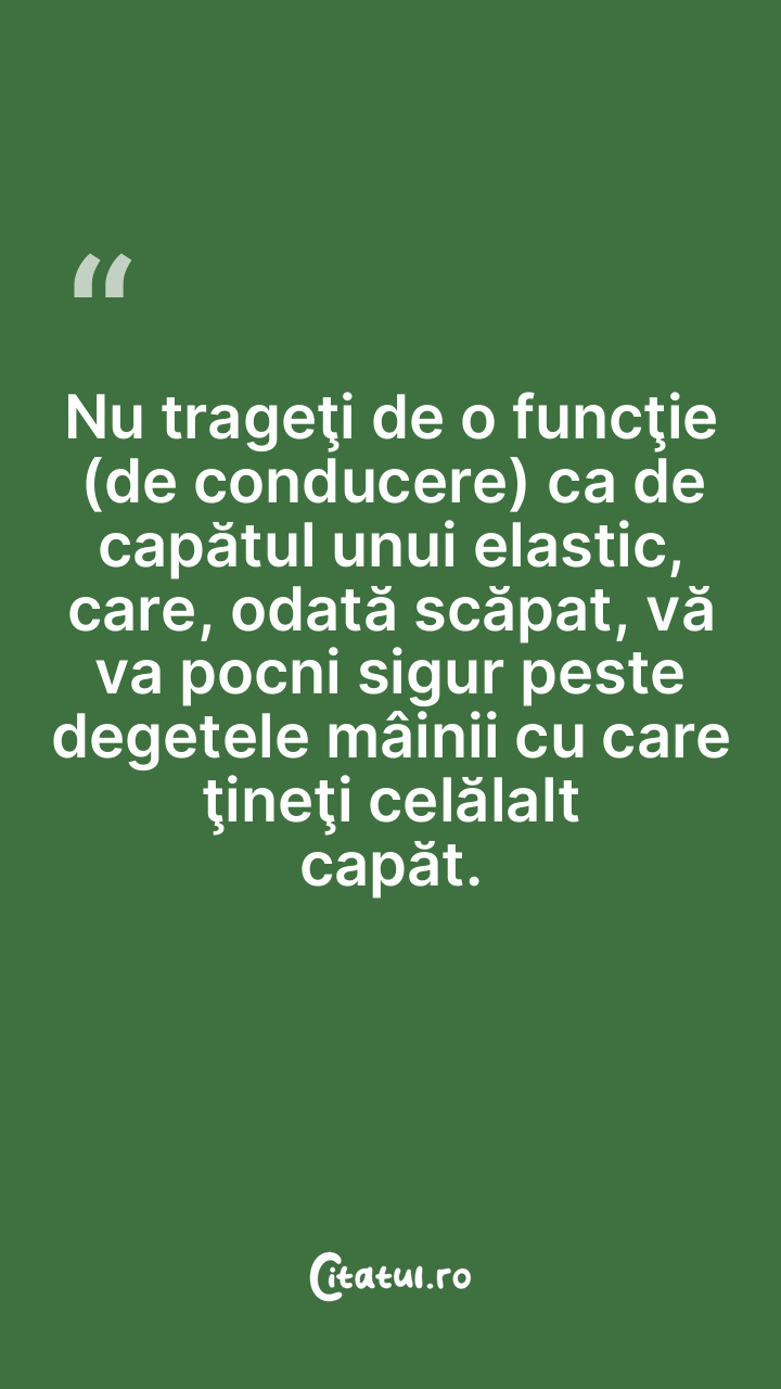 Nu trageţi de o funcţie (de conducere) ca de capătul unui elastic, care, odată scăpat, vă va pocni sigur peste degetele mâinii cu care ţineţi celălalt capăt.