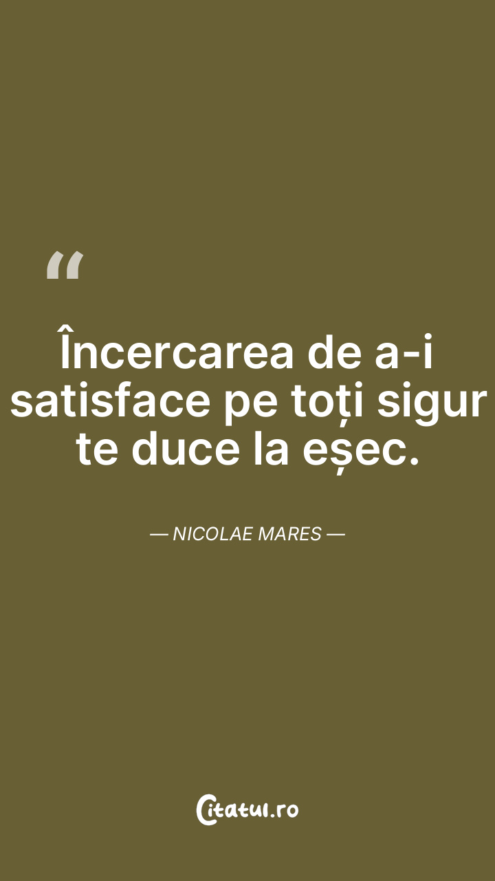 Încercarea de a-i satisface pe toți sigur te duce la eșec. Nicolae Mares