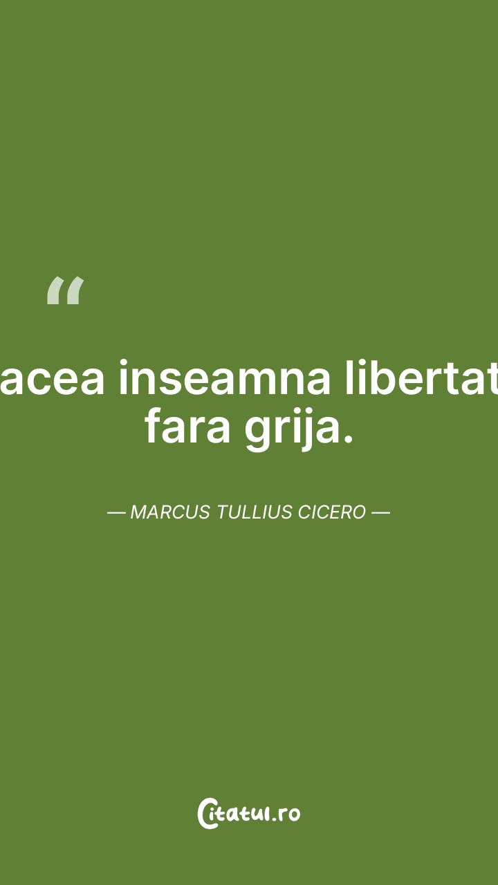 Pacea inseamna libertate fara grija. Marcus Tullius Cicero