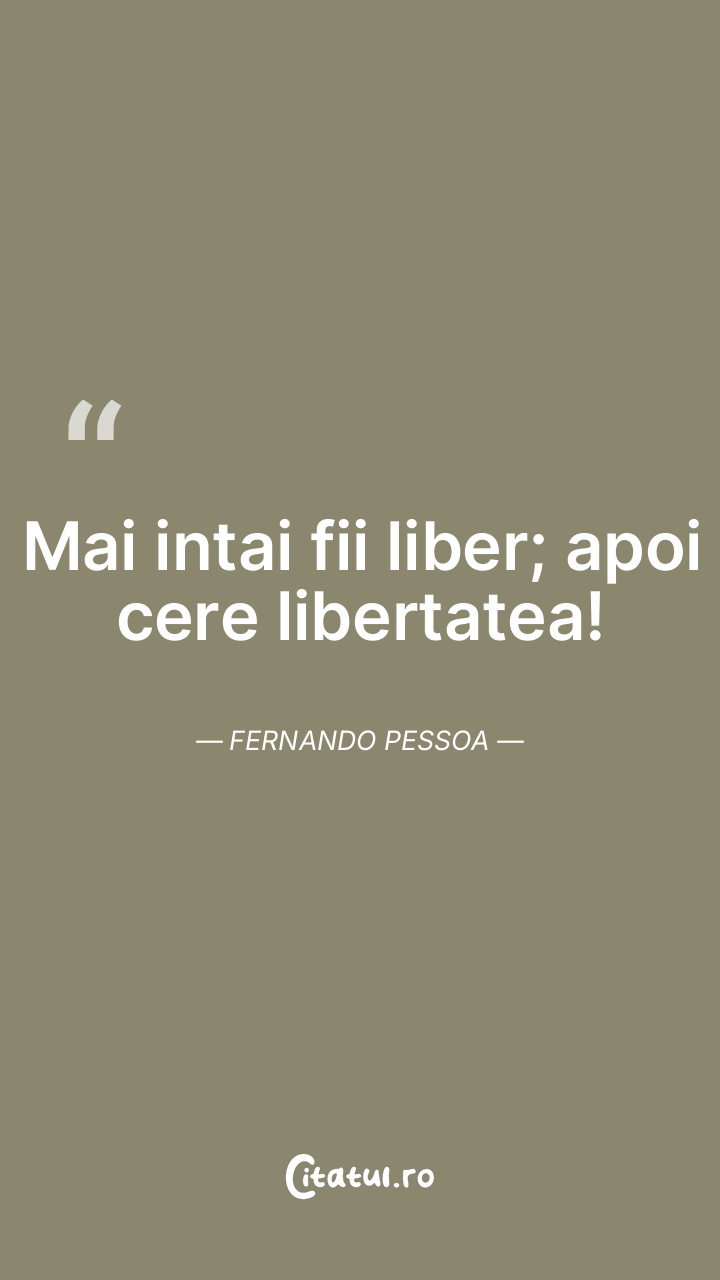 Mai intai fii liber; apoi cere libertatea! Fernando Pessoa