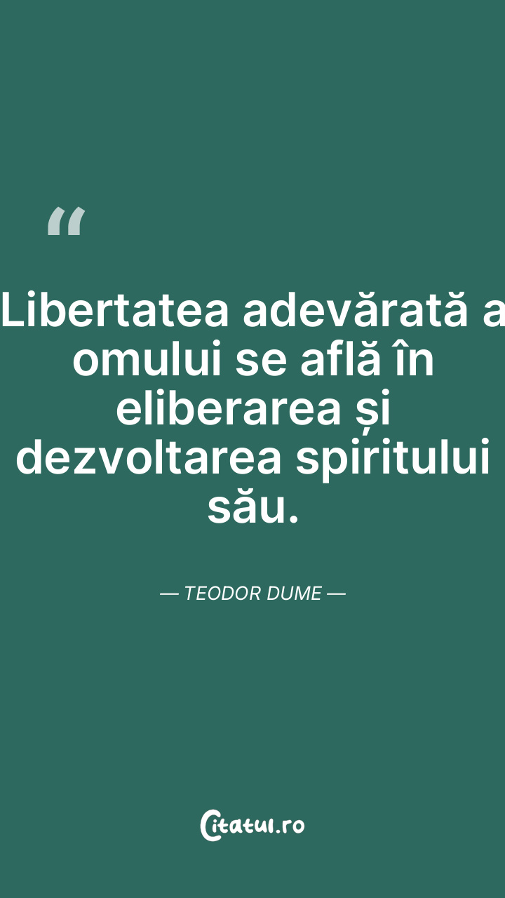 Libertatea adevărată a omului se află în eliberarea și dezvoltarea spiritului său. Teodor Dume