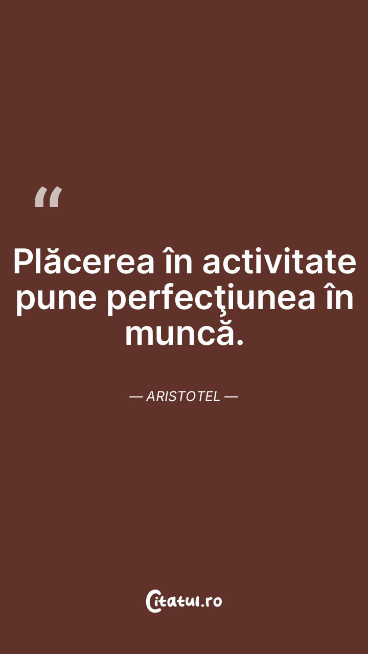 Plăcerea în activitate pune perfecţiunea în muncă. Aristotel