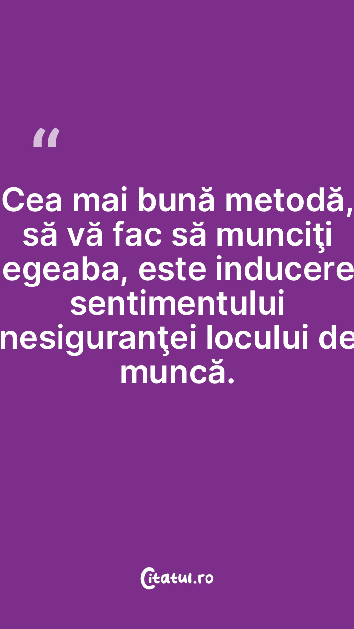 Cea mai bună metodă, să vă fac să munciţi degeaba, este inducerea sentimentului nesiguranţei locului de muncă.