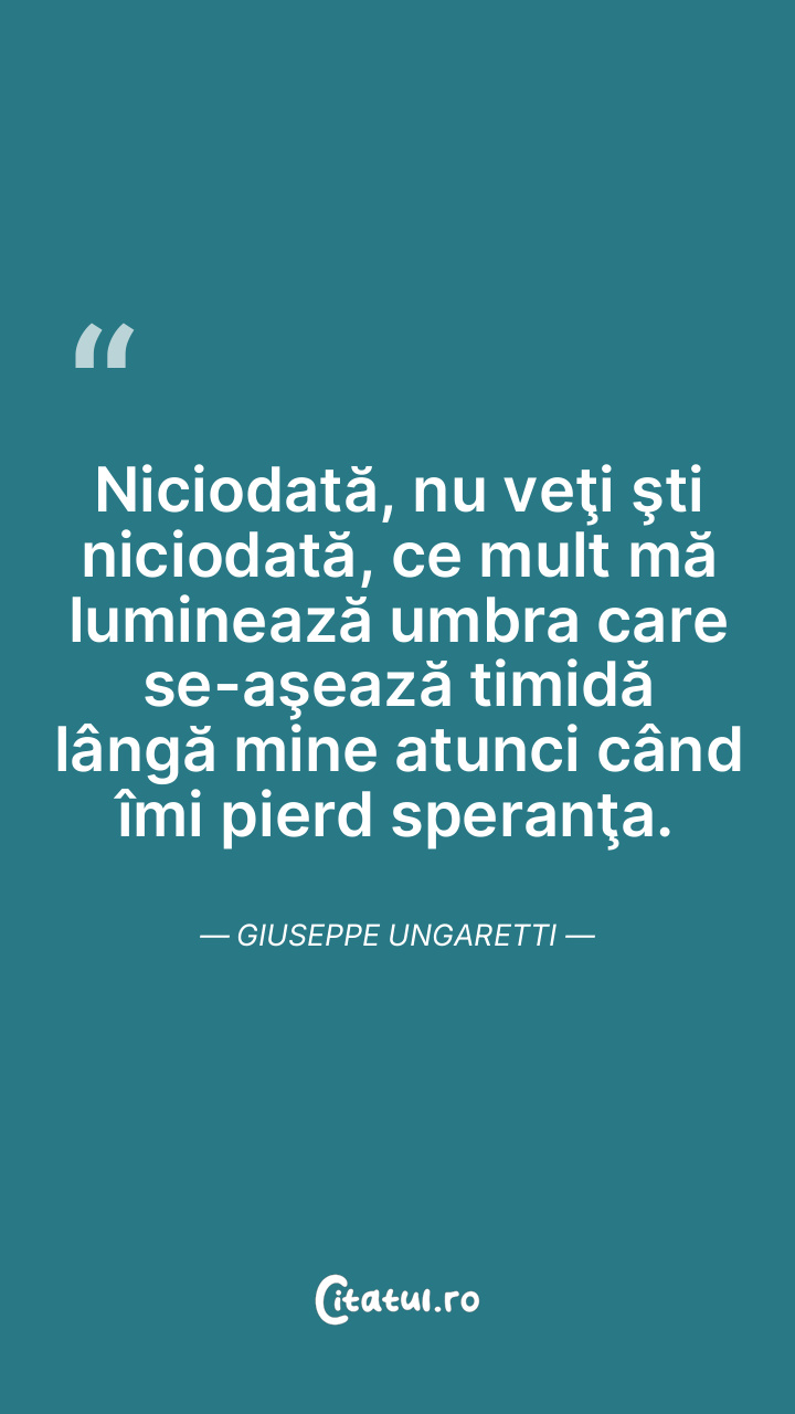 Niciodată, nu veţi şti niciodată, ce mult mă luminează umbra care se-aşează timidă lângă mine atunci când îmi pierd speranţa. Giuseppe Ungaretti