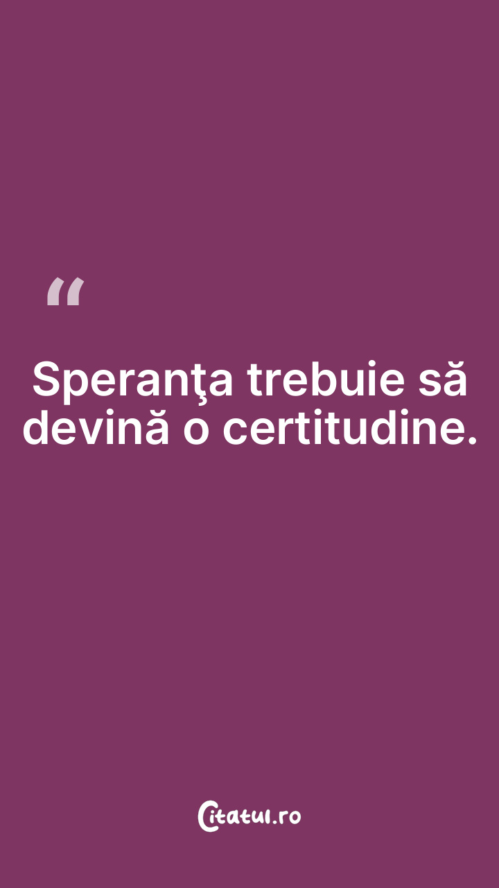 Speranţa trebuie să devină o certitudine. ...
