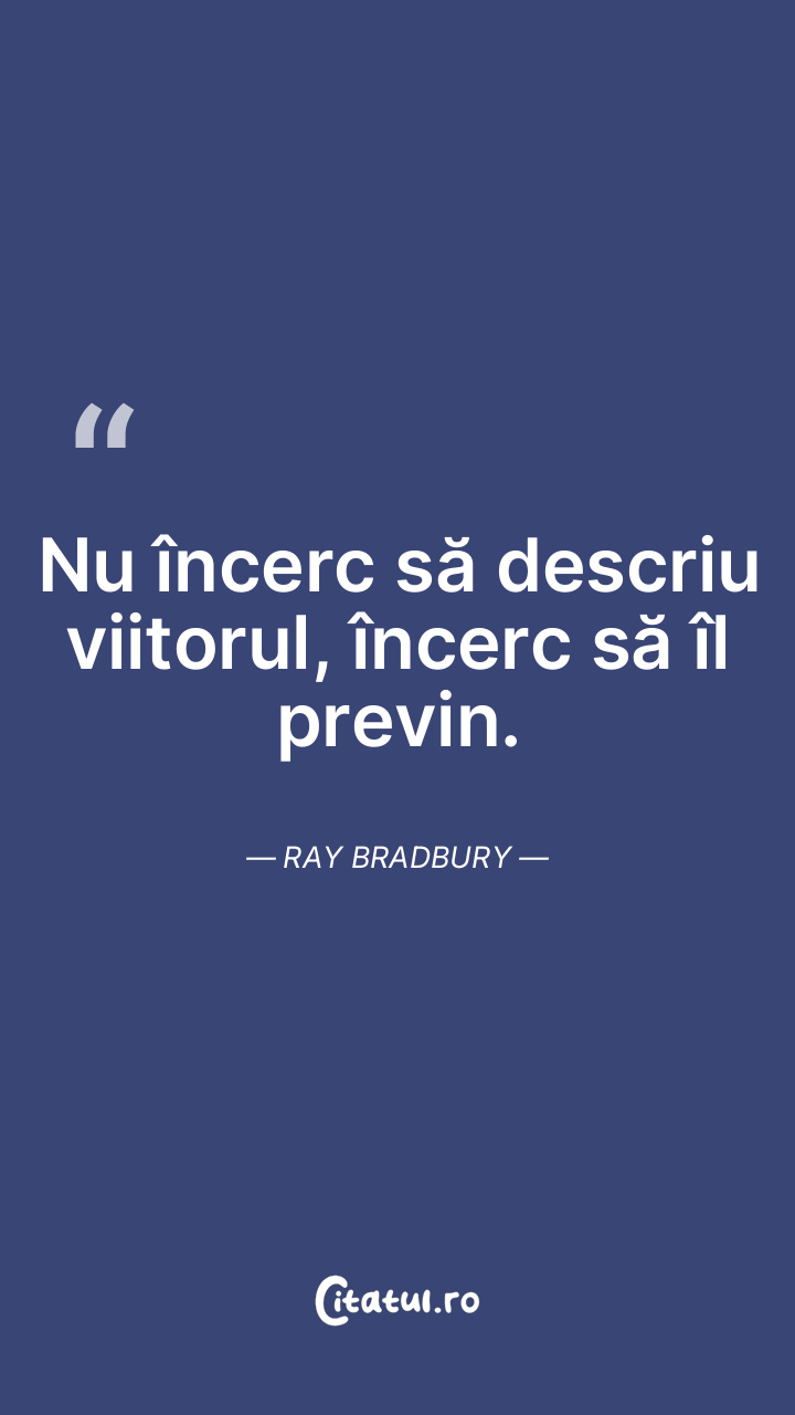 Nu încerc să descriu viitorul, încerc să îl previn. Ray Bradbury