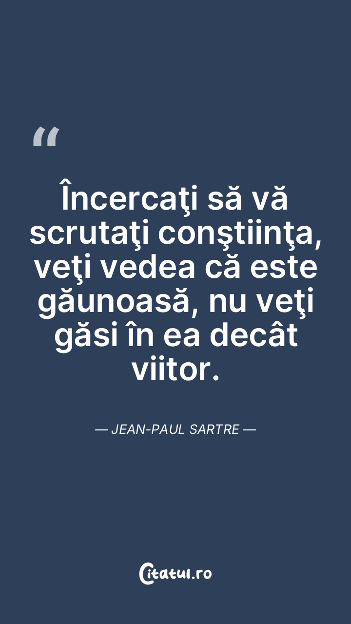 Încercaţi să vă scrutaţi conştiinţa, veţi vedea că este găunoasă, nu veţi găsi în ea decât viitor. Jean-Paul Sartre