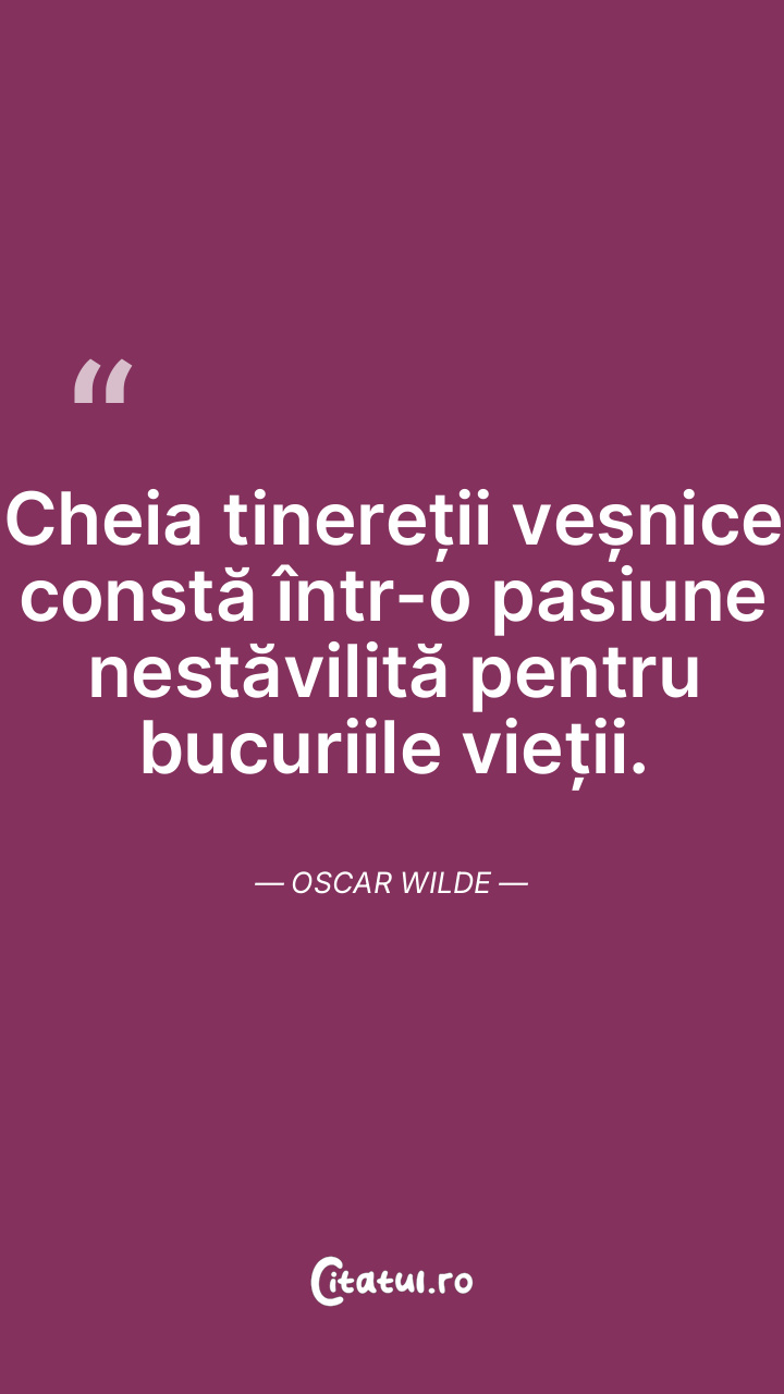 Cheia tinereții veșnice constă într-o pasiune nestăvilită pentru bucuriile vieții. Oscar Wilde
