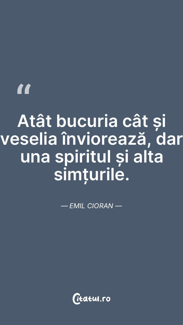 Atât bucuria cât și veselia înviorează, dar una spiritul și alta simțurile. Emil Cioran