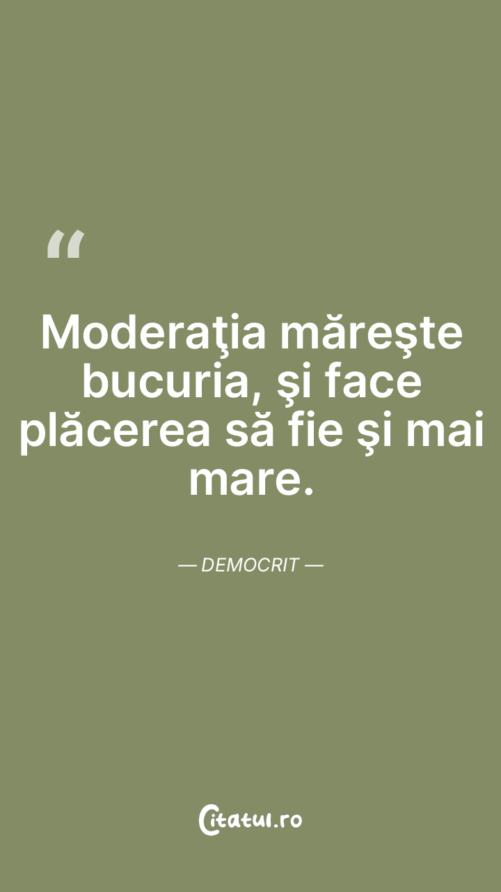 Moderaţia măreşte bucuria, şi face plăcerea să fie şi mai mare. Democrit