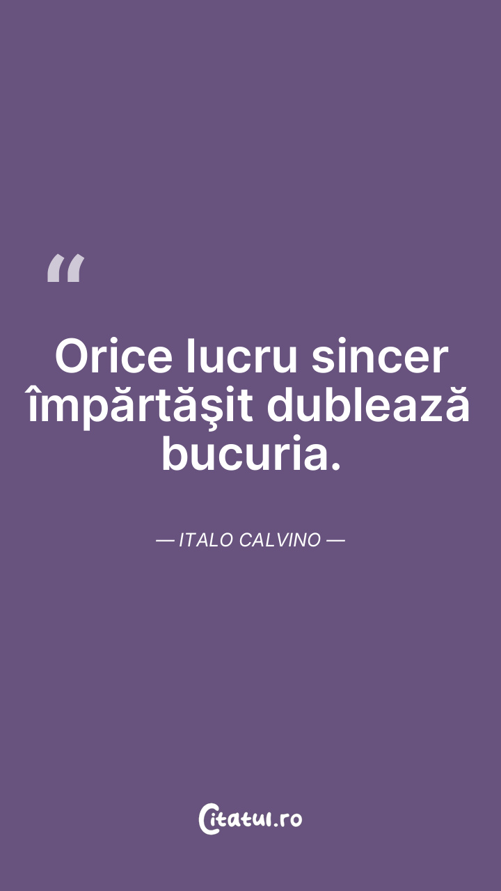 Orice lucru sincer împărtăşit dublează bucuria. Italo Calvino