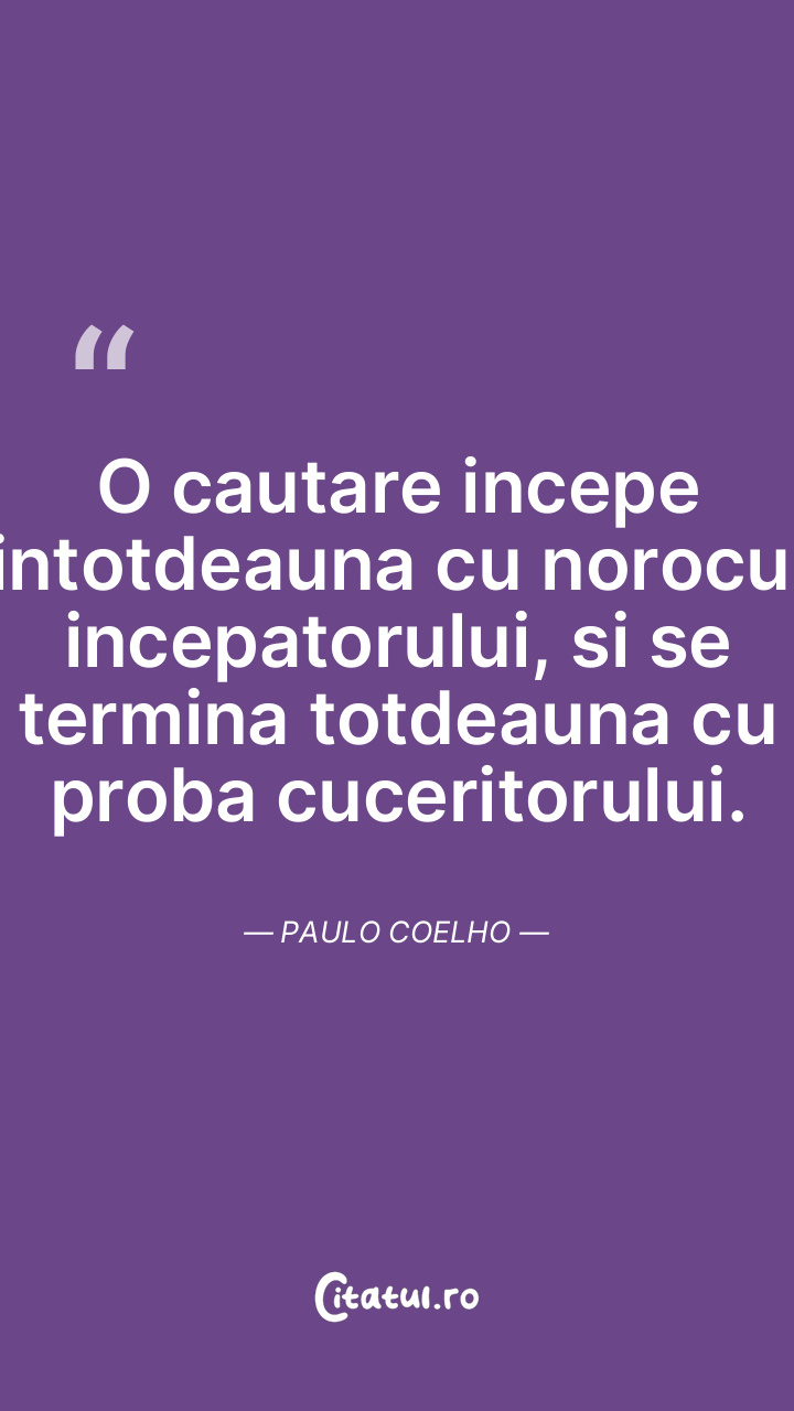 O cautare incepe intotdeauna cu norocul incepatorului, si se termina totdeauna cu proba cuceritorului. Paulo Coelho