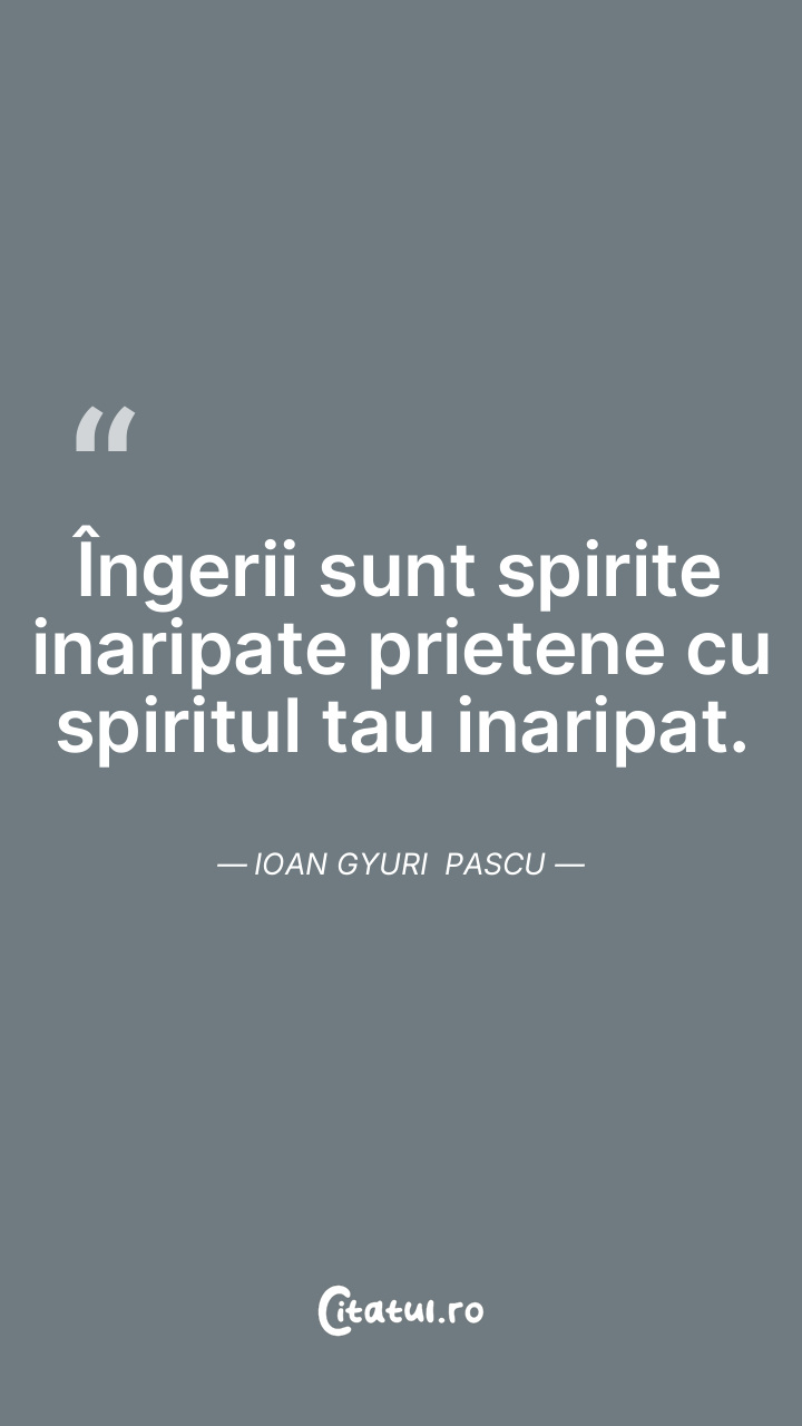 Îngerii sunt spirite inaripate prietene cu spiritul tau inaripat. Ioan Gyuri Pascu