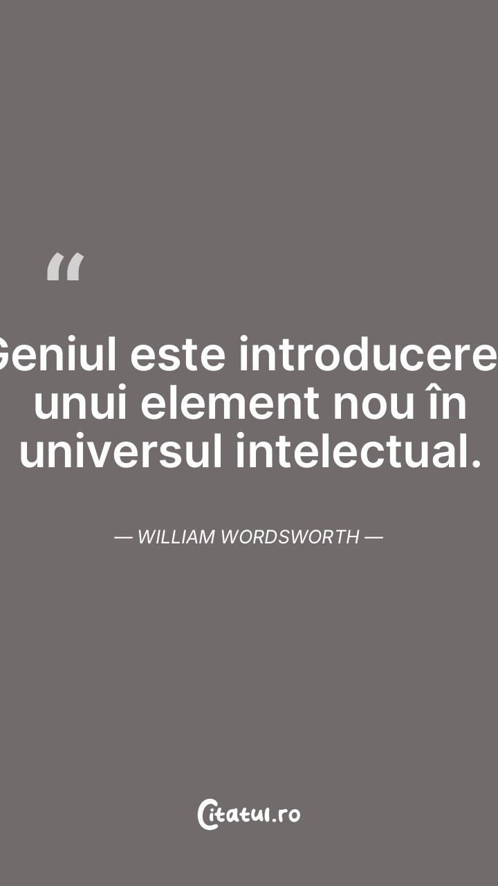 Geniul este introducerea unui element nou în universul intelectual. William Wordsworth
