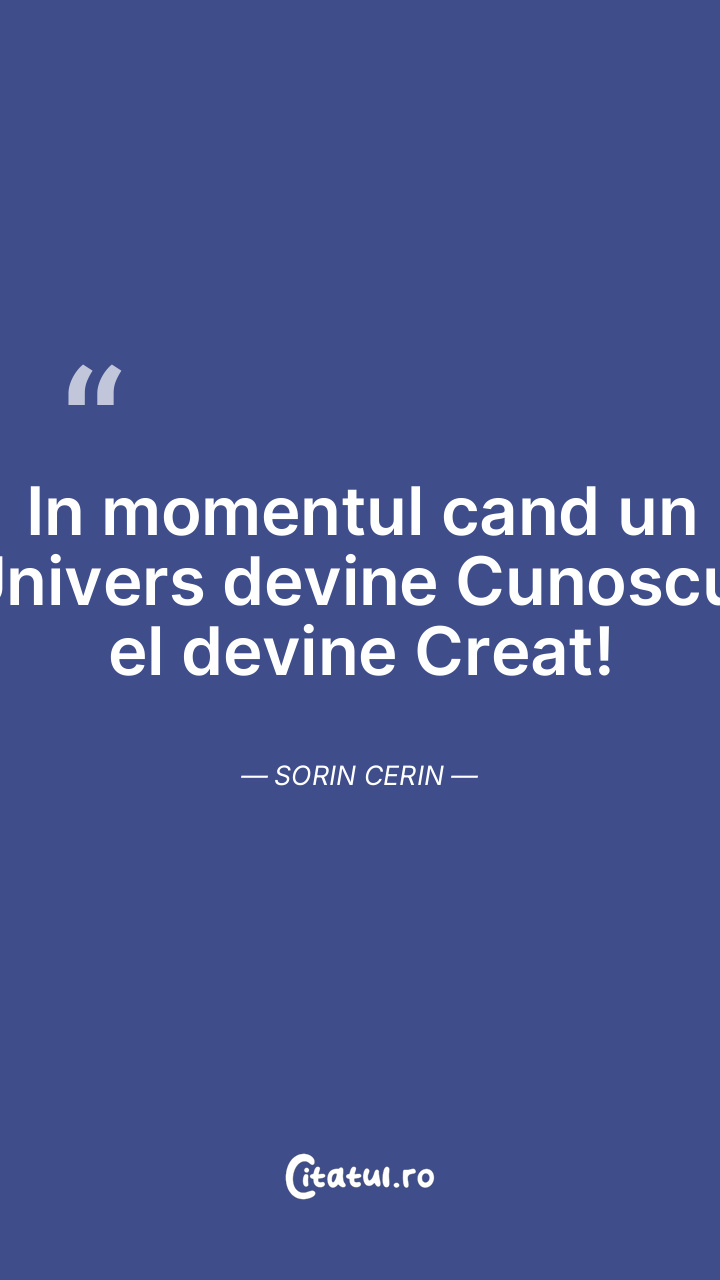 In momentul cand un Univers devine Cunoscut el devine Creat! Sorin Cerin