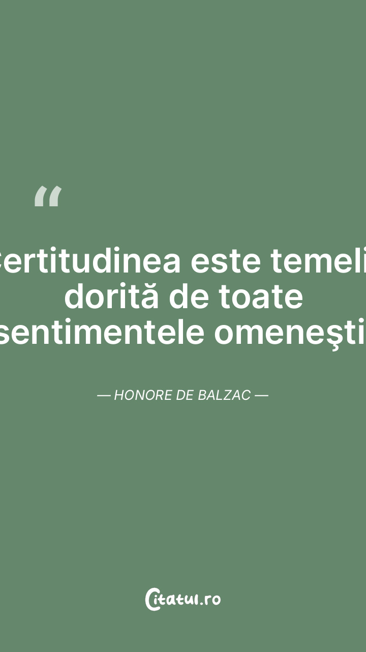 Certitudinea este temelia dorită de toate sentimentele omeneşti. Honore de Balzac