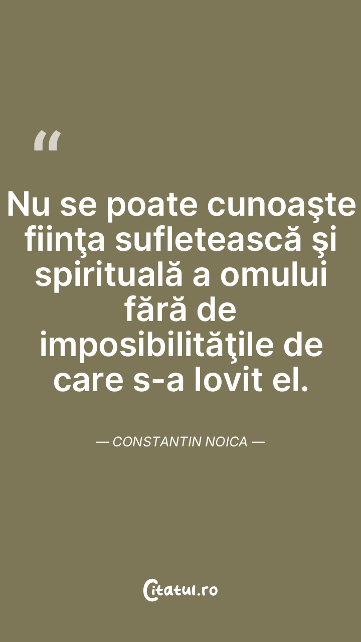 Nu se poate cunoaşte fiinţa sufletească şi spirituală a omului fără de imposibilităţile de care s-a lovit el. Constantin Noica