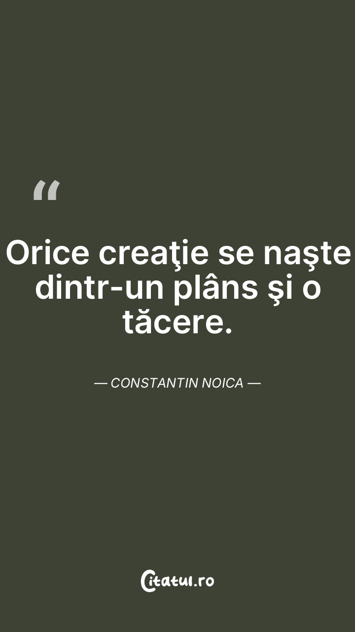 Orice creaţie se naşte dintr-un plâns şi o tăcere. Constantin Noica