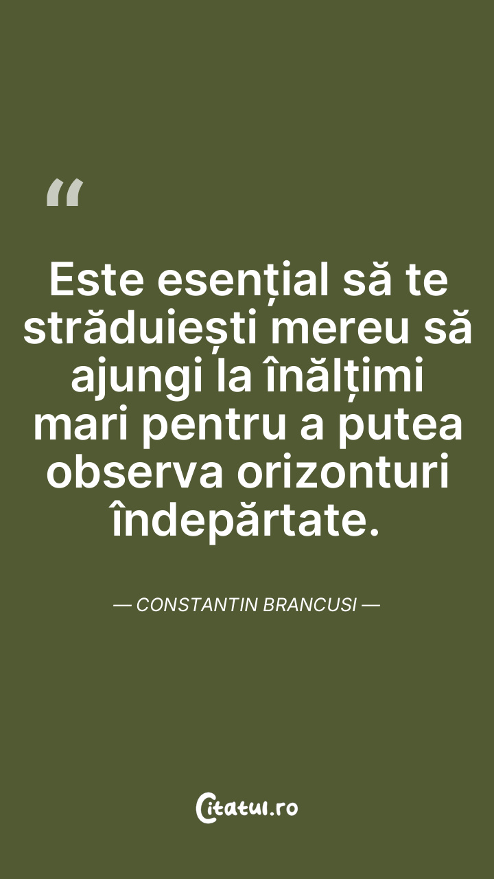 Este esențial să te străduiești mereu să ajungi la înălțimi mari pentru a putea observa orizonturi îndepărtate. Constantin Brancusi