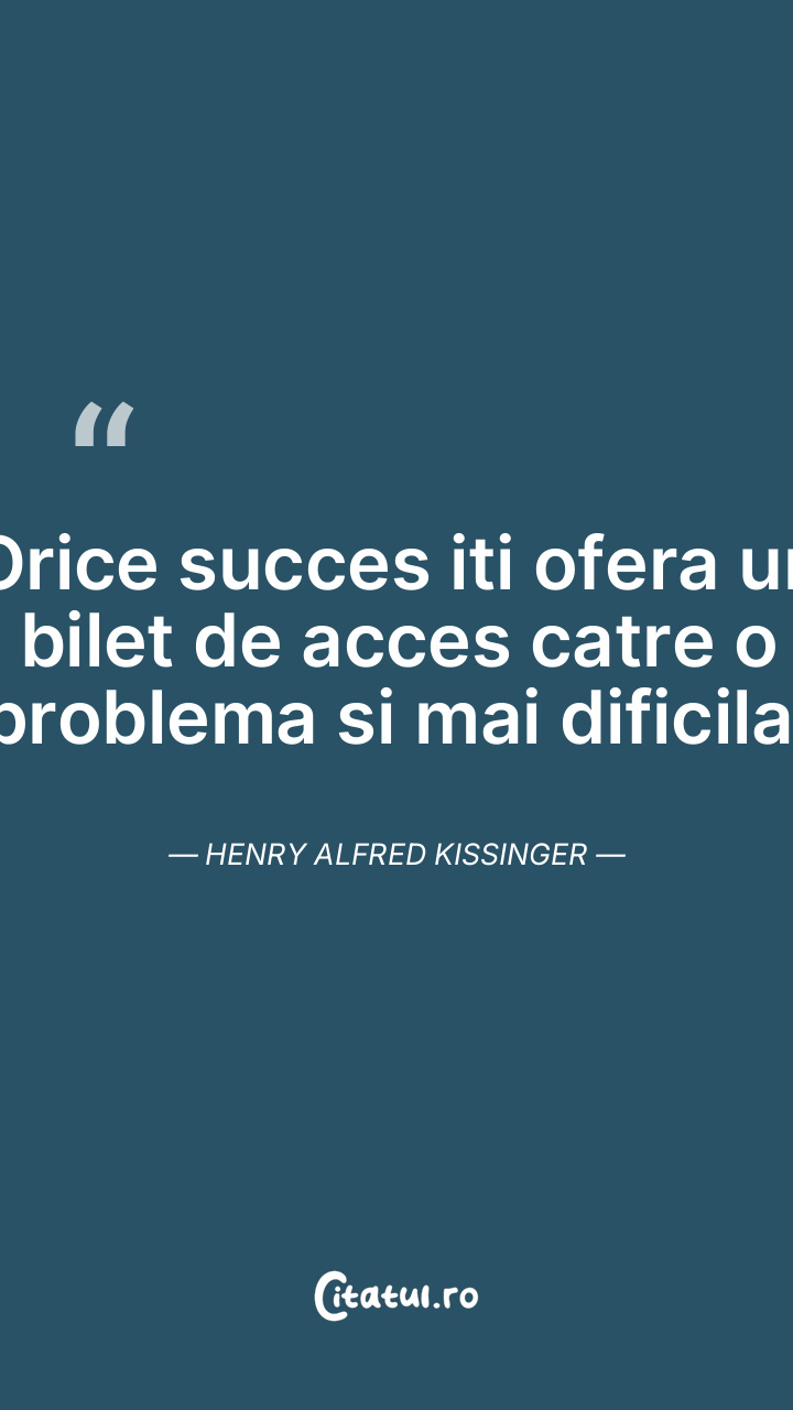 Orice succes iti ofera un bilet de acces catre o problema si mai dificila. Henry Alfred Kissinger