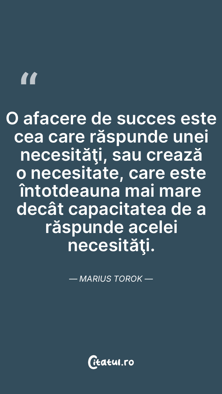 O afacere de succes este cea care răspunde unei necesităţi, sau crează o necesitate, care este întotdeauna mai mare decât capacitatea de a răspunde acelei necesităţi. Marius Torok