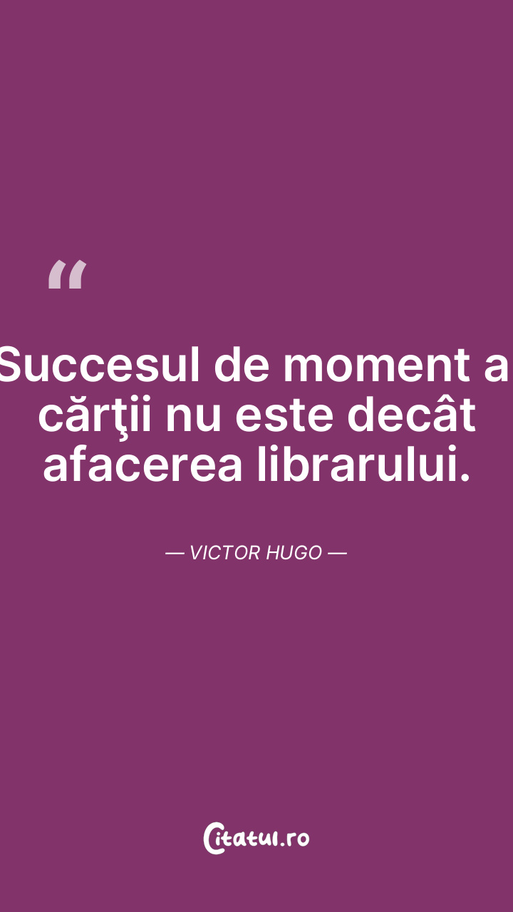 Succesul de moment al cărţii nu este decât afacerea librarului. Victor Hugo