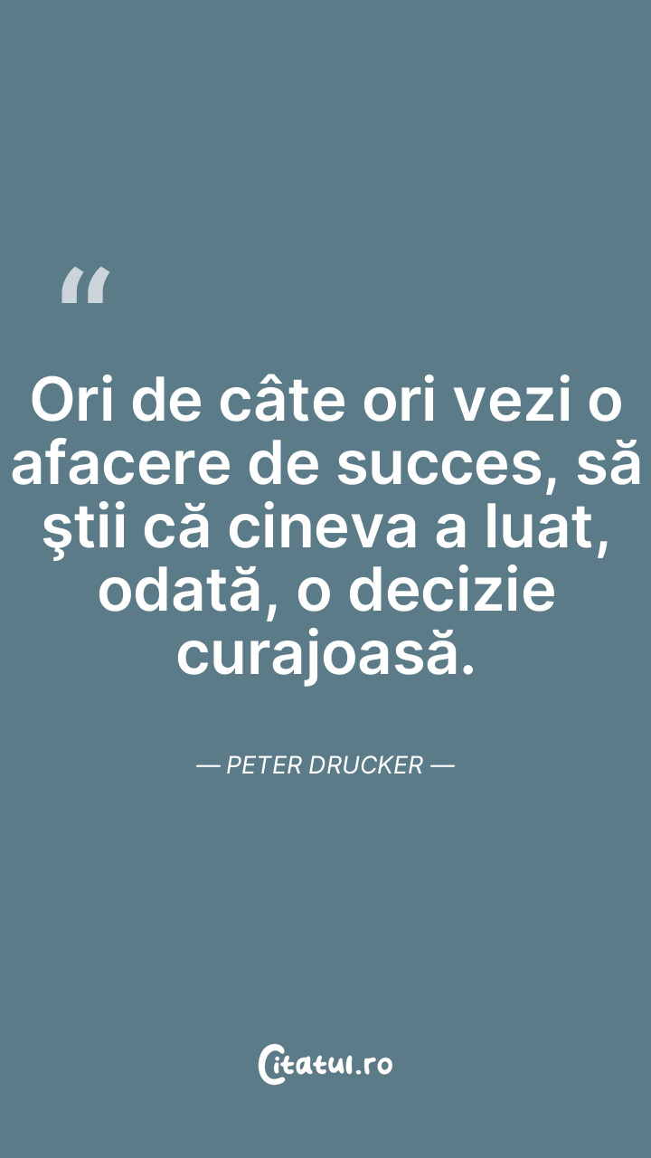 Ori de câte ori vezi o afacere de succes, să ştii că cineva a luat, odată, o decizie curajoasă. Peter Drucker