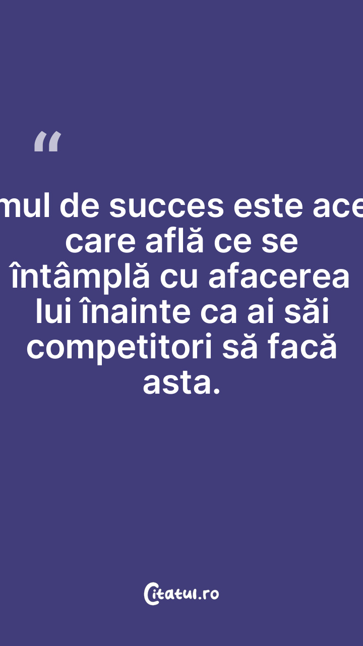 Omul de succes este acela care află ce se întâmplă cu afacerea lui înainte ca ai săi competitori să facă asta.