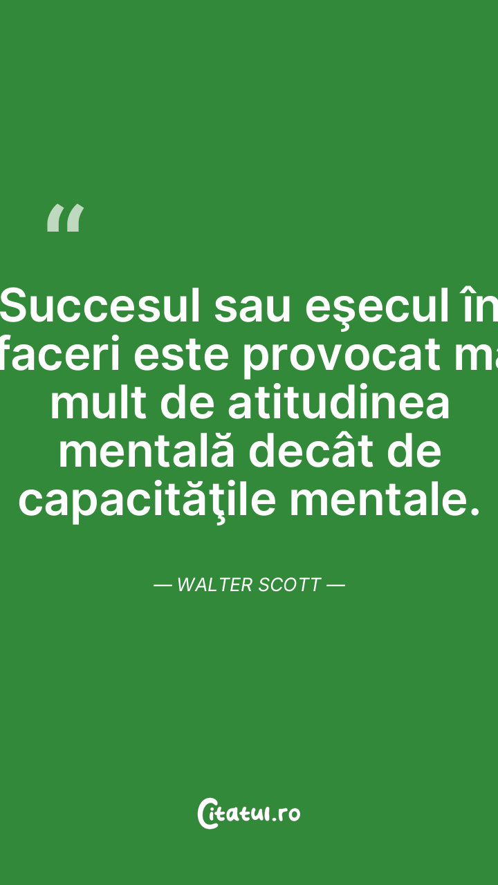 Succesul sau eşecul în afaceri este provocat mai mult de atitudinea mentală decât de capacităţile mentale. Walter Scott