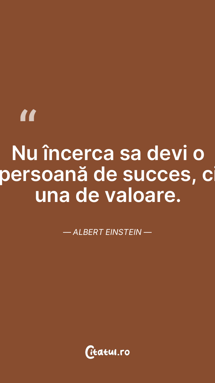 Nu încerca sa devi o persoană de succes, ci una de valoare. Albert Einstein