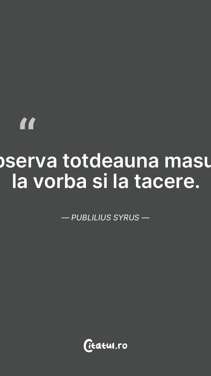 Observa totdeauna masura la vorba si la tacere. Publilius Syrus