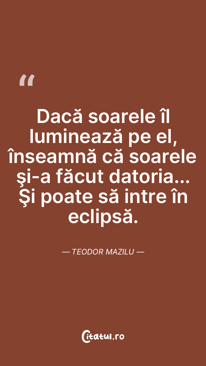 Dacă soarele îl luminează pe el, înseamnă că soarele şi-a făcut datoria... Şi poate să intre în eclipsă. Teodor Mazilu